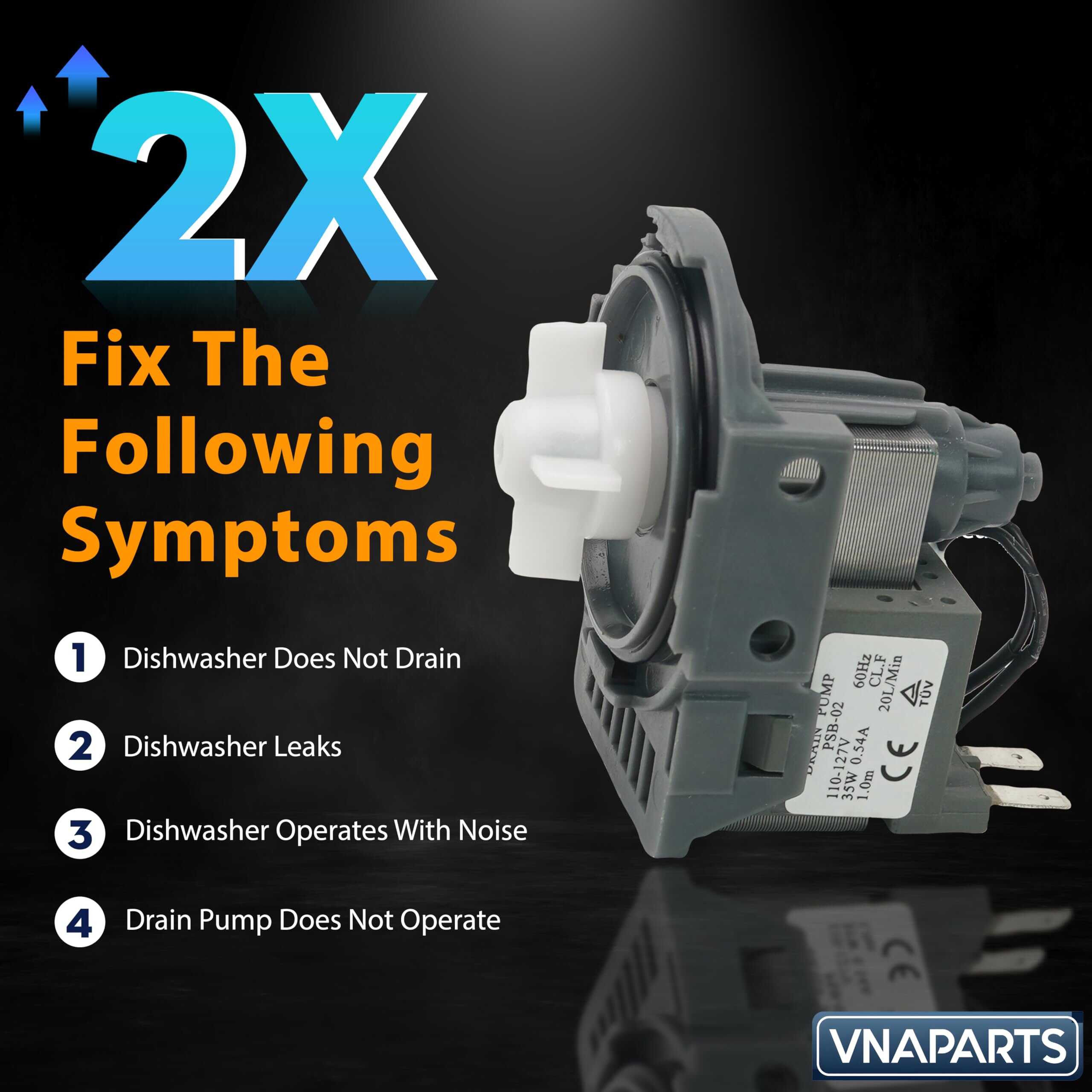 Operación confiable: Repara síntomas comunes que incluyen sonidos bajos de zumbido o chirrido, asegurando que su lavavajillas complete ciclos de lavado sin interrupciones.