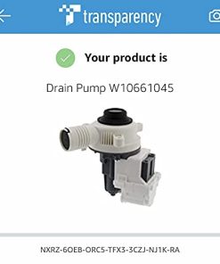 Bomba de drenaje para lavadora OEM W10661045, para Whirlpool y sus marcas afiliadas. Compatible con varios modelos de lavadoras Kenmore y Whirlpool, incluyendo Admiral, Amana, Crosley, Inglis, Maytag. Números de modelo compatibles incluyen ATW4675EW0, MVWC200BW1, NTW4516FW0, WTW4816FW0, entre otros. Asegúrese de verificar la compatibilidad con su modelo actual antes de realizar la compra.