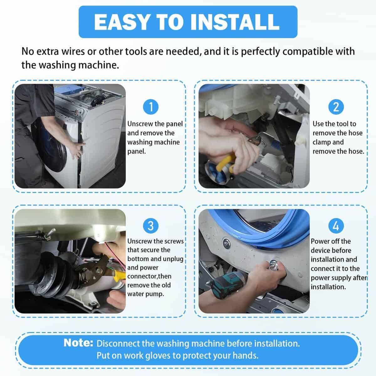 4. CALIDAD PREMIUM – La bomba de drenaje y filtro está hecha de material de alta calidad, resistencia al calor y al desgaste, más duradera. Es muy fácil de instalar, no se necesitan cables adicionales ni otras herramientas, y es perfectamente compatible con la lavadora. Si su lavadora no drena y el agua sigue en la tina, es posible que necesite esta bomba de drenaje TOVEN-RV WH11X29539. Desconecte la lavadora antes de instalar esta pieza de repuesto. Se recomienda usar guantes para proteger sus manos.
