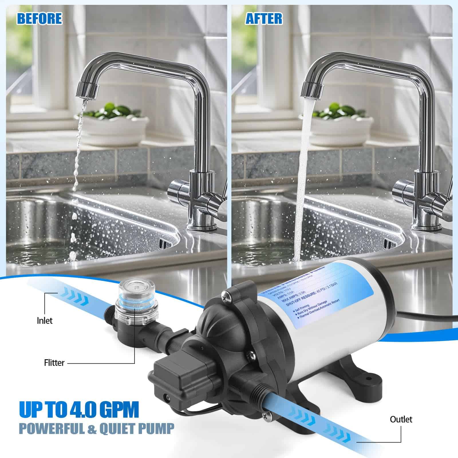 Bomba de Presión de Agua 115V 17PCS Kit, Bomba de Diafragma