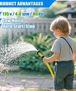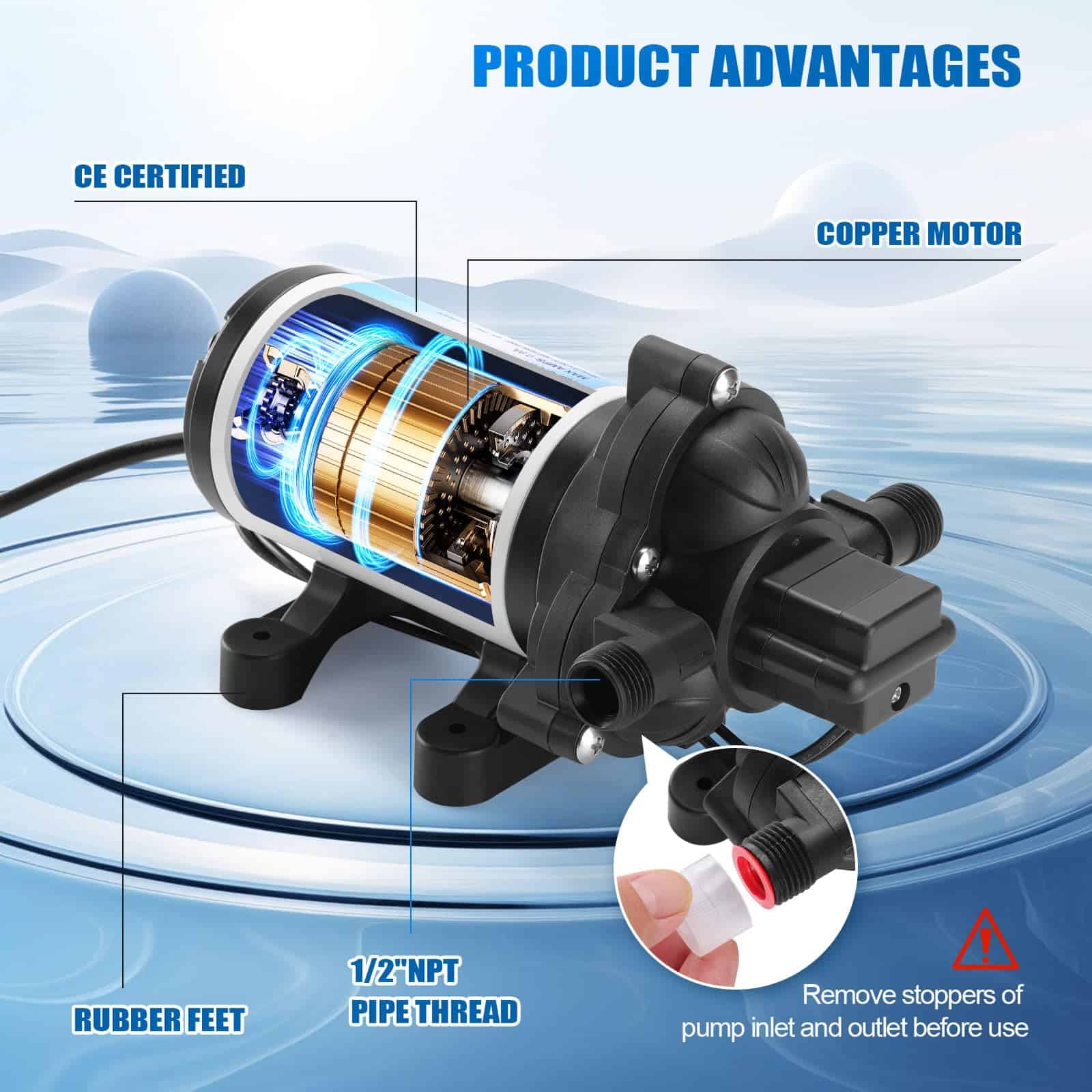 1. Bomba potente y silenciosa: la bomba de diafragma de 115V equipada con motor de cobre proporciona una capacidad de flujo de 4.0 GPM; Sin impulsor para desgastarse o fallar para una transferencia más silenciosa y una vida útil más larga que la bomba de impulsor. 2. Arranque/Parada automática: La bomba de presión de agua FIDISP incorpora un interruptor de presión a 45 PSI, comienza cuando se enciende el grifo de agua, se detiene cuando se apaga el grifo de agua. Ayuda a deshacerse del problema de la baja presión del agua. 3. Fácil de usar: la bomba de refuerzo autocebante funciona en seco sin daños, con enchufe de corriente de 115 voltios, simplemente conecta el enchufe de corriente a la toma de corriente estándar para un uso fácil, también viene con adaptadores de manguera y adaptadores de manguera de jardín para una fácil instalación. 4. Amplia aplicación: la bomba de servicio público se utiliza ampliamente en agricultura, industria, hogar, jardín, interior y exterior; Diseñado para riego, pulverización, transferencia de fluidos, suministro de agua para RV, drenaje de agua, succión de agua u otras aplicaciones de transferencia de líquidos. 5. Kit de bomba de diafragma de 17 piezas: 1 x bomba de agua de diafragma de 115V, 1 x filtro de agua, 6 x accesorios de manguera, 4x adaptadores de manguera de jardín negros, 4x abrazaderas de manguera de acero inoxidable, 1 x manual de usuario. 6. Consejos: Puede ser utilizado para agua salada y dulce y líquidos no inflamables