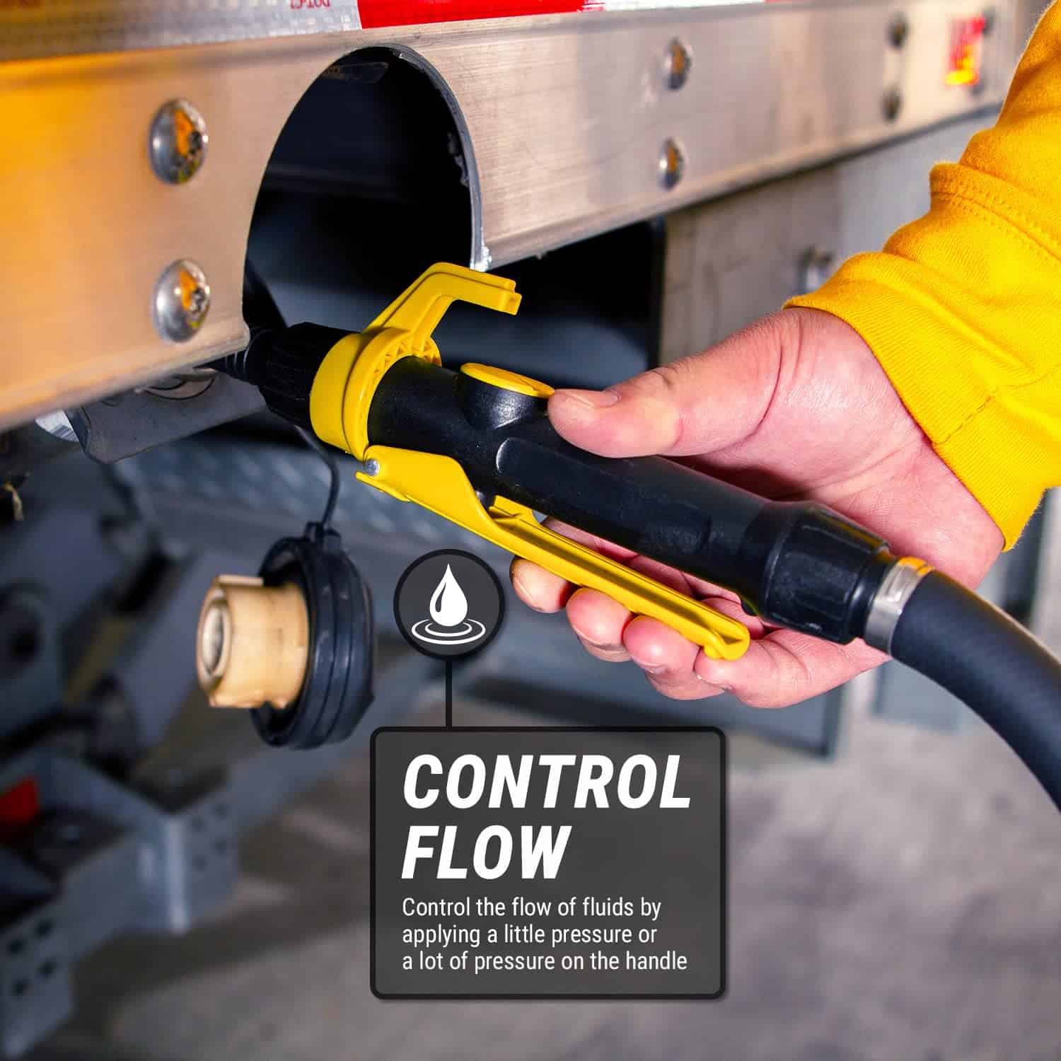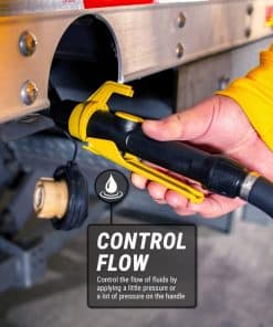 4. BOQUILLA DE CONTROL DE FLUJO – Tome control del flujo con nuestra boquilla precisa, gira 360 grados para evitar enredos de la manguera y es bloqueable para sesiones más largas | Manguera de descarga de 6.6 pies con refuerzo de malla de poliéster de 4 capas con construcción flexible resistente al aceite, llama y resistencia al clima frío.