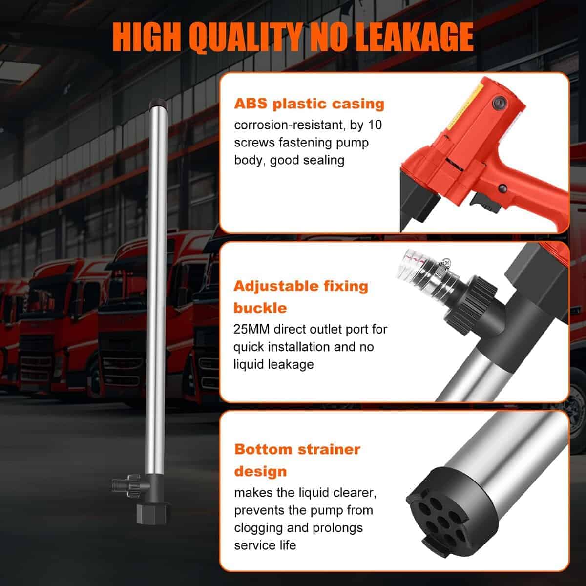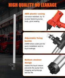 2. Transferencia líquida versátil: Esta bomba de transferencia líquida multi-funcional está diseñada para una amplia gama de aplicaciones. Su tubo de succión de acero inoxidable de 91CM es perfecto para transferir agua, queroseno y diesel, haciéndolo una herramienta esencial para uso automotriz, industrial y doméstico.