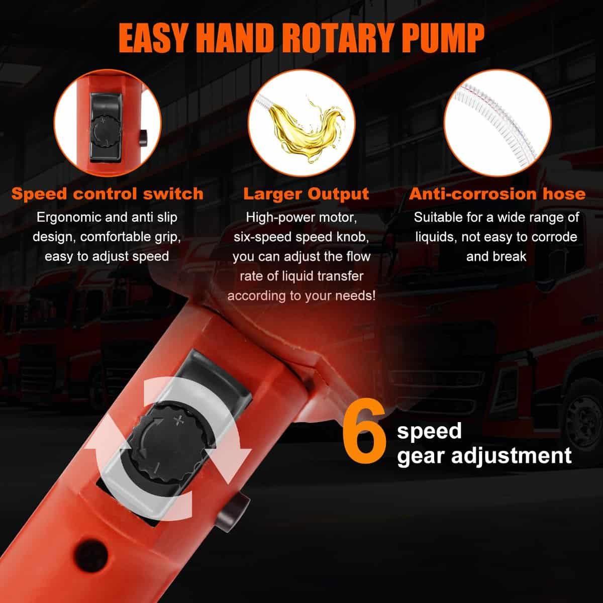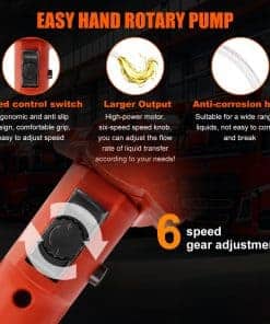 4. Control de velocidad ajustable: Adapte su experiencia de bombeo con la función ajustable de 6 velocidades. Esto le permite personalizar la velocidad de transferencia de líquidos según sus necesidades específicas, brindándole un mayor control y eficiencia durante la operación.