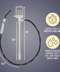 1. ¡DEJA DE LEVANTAR BIDONES PESADOS! | ¡Finalmente un Sistema Flexible que Alivia tu Espalda! | ¡Opera la Bomba con una Mano o 100% sin Necesidad de Levantar Pesos! | La Manguera de Transferencia y Succión Extra Larga Alcanza Fácilmente el Interior de Bidones Altos, Grandes Garrafones de Agua y Otros Tanques Grandes, Mientras que la Manguera de Transferencia Extra Grande Proporciona más Longitud y Alcance.