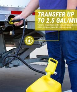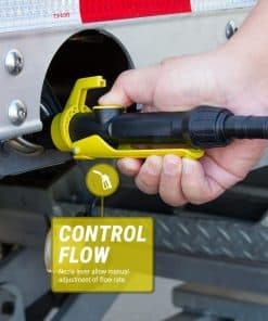 FÁCIL DE USAR: Controla el flujo de líquido ajustando el gatillo y bloqueándolo para llenados más prolongados. La boquilla gira 360 grados para una mayor comodidad. Con una manguera de descarga de 4.29 pies, puedes llenar desde distancias más lejanas sin esfuerzo.
