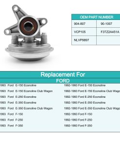 Bomba de vacío AULINK 904-807 compatible con Ford F-150 F-250 F-350, E150, E350, E250 Econoline y E350 Econoline Club Wagon (años 1992-1993). Esta bomba de vacío se vende directamente de fábrica, lo que le ahorra costos. Se realiza un seguimiento profesional de la calidad del producto y se ofrece un servicio postventa excepcional. Ofrece un alto rendimiento y una larga vida útil, con una carcasa mecanizada en CNC para garantizar la precisión de las dimensiones. Fabricada en instalaciones certificadas TS16949, se somete a pruebas de funcionamiento y fugas al 100 %. Incluye todos los kits necesarios para una instalación más sencilla. ¡Garantía de 1 año o 50000 km!
