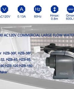 Compatible con: AP1200 AC120V bomba de agua compatible con HZB-30F, HZB-38F, HZB-32, HZB-45, HZB-65, HZB-90, HZB-120, HZB-160 hacedor de hielo. Diseño Duradero y Seguro Para evitar daños y fallas en el cable de alimentación y fugas en el cableado, el exclusivo envoltorio de manguera forma una protección secundaria, haciendo que su equipo sea más estable y seguro!