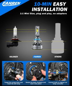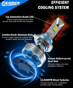 La construcción de aluminio de aviación y el diseño de disipación de calor hueco de la luz 9012 proporcionan una excelente refrigeración, con un ventilador de enfriamiento incorporado de 12000 RPM que garantiza un funcionamiento eficiente y una larga vida útil del producto. Su diseño mini 1:1 permite una instalación rápida y sencilla en tan solo 10 minutos, sin necesidad de modificaciones.