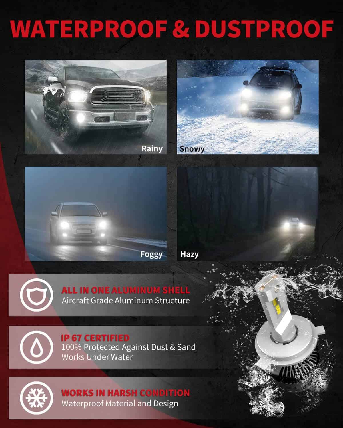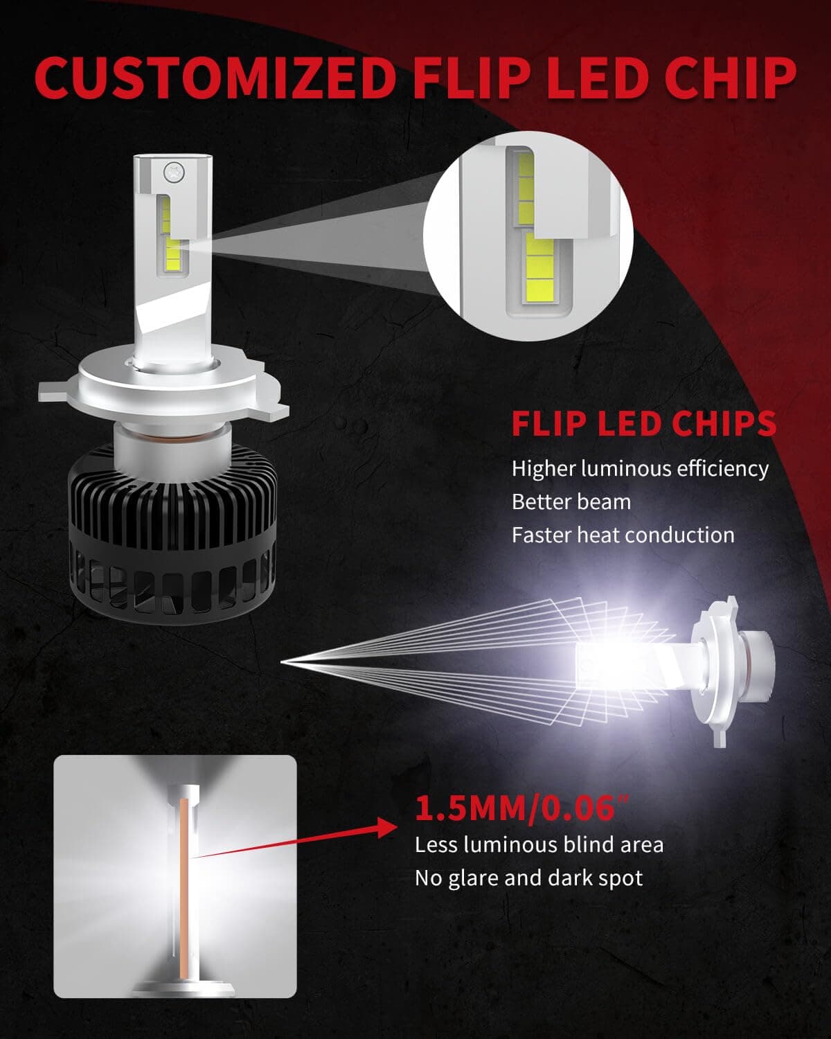 3. Iluminación Instantánea para Cualquier Condición: El diseño más nuevo hace que las bombillas sean sobresalientes en cualquier condición, un buen compañero ya sea en tu conducción diaria o en tus viajes. Dos sustratos de cobre de 0,8 mm que combinan uno de 2,0 mm proporcionan una eficiencia térmica 2 a 3 veces más rápida que los sustratos de cobre tradicionales, lo que significa que las bombillas siempre funcionarán de manera estable y obtendrán una iluminación continua para cualquier condición.