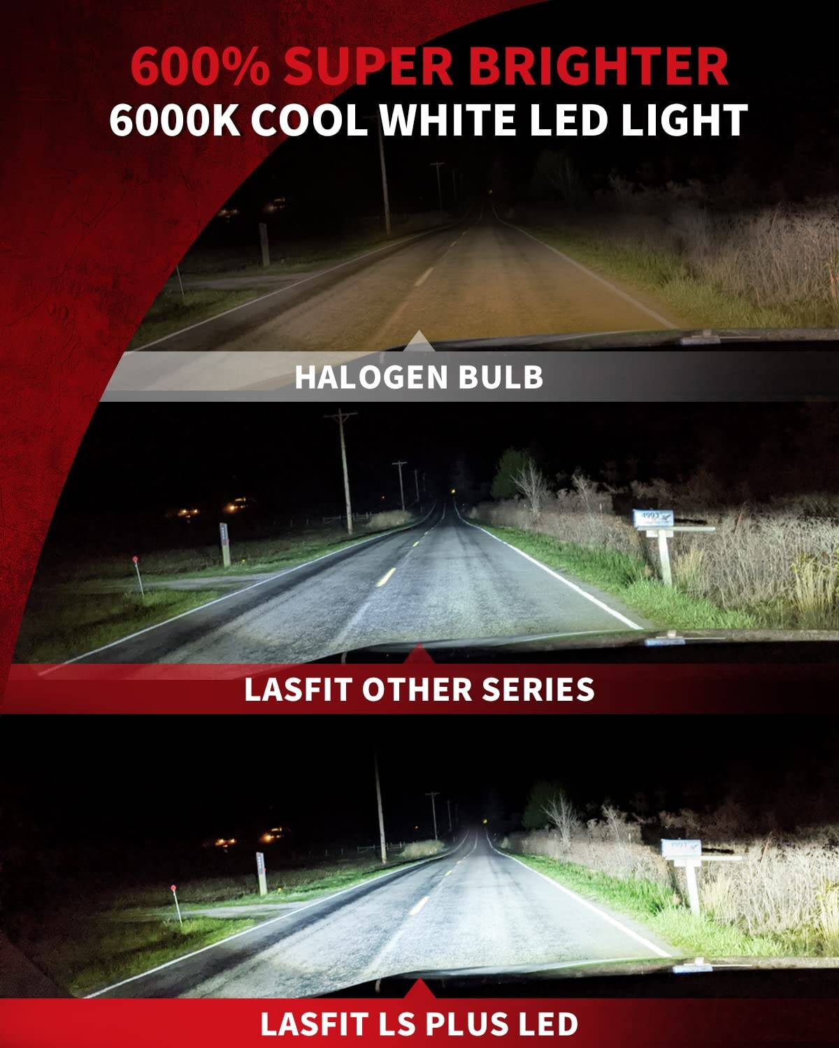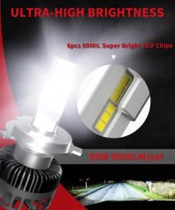 Bombilla LED LASFIT 9003 H4, 9000LM 6000K Blanco Brillante,