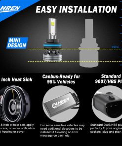 Las luces antiniebla FAHREN 9007 tienen chips de actualización automática que brindan un brillo increíblemente potente con una temperatura de color de 6500K y 33,000 lúmenes. Esto garantiza que puedas ver claramente el camino y las señales de tráfico durante la noche, lo que mejora tu seguridad al volante. La vida útil de más de 60,000 horas debido a su construcción en aluminio de aviación y diseño único de disipación de calor hueco, junto con un ventilador de enfriamiento de 12,000 RPM, hace que estas luces sean duraderas y confiables. La instalación es rápida y sencilla, sin necesidad de adaptadores, simplemente plug and play en 10 minutos. Adaptables a un 98% de los vehículos sin errores, estas bombillas antiniebla HB5 tienen un haz de luz ajustable a 360° para ofrecer la mejor visibilidad sin puntos oscuros o sombras. Además, su diseño impermeable IP68 garantiza su funcionamiento incluso en condiciones climáticas adversas como lluvia intensa o nieve pesada. ¡Con las luces antiniebla FAHREN 9007, disfrutarás de una conducción segura y clara en todo momento!