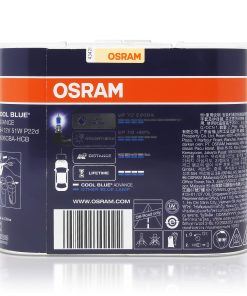 COOL BLUE ADVANCE convence con luz halógena mega blanca y altas temperaturas de color de hasta 5,000 K. Las lámparas generan hasta un 50% más de luz en comparación con otras lámparas halógenas recubiertas de azul. Hecho en China.