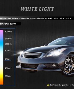 Bombillas de Faros de Xenón HID D2S 6000K Blanco Frío 35W Compatible con 2008-2014 Infiniti G25 G35 G37. Luz Blanca Cómodo color blanco diurno de 6000K, mucho más claro que el amarillo tenue de fábrica de 4300K. Calidad Alta calidad Fabricación estandarizada y material de vidrio anti-UV para garantizar un rendimiento excelente y una vida útil excelente. Instalación Fácil Instalación Plug-N-Play diseñada para adaptarse a su carcasa OEM de fábrica sin necesidad de cableado o modificación. Paquete Incluido 2 bombillas de xenón HID D2S de 35W 6000K.
