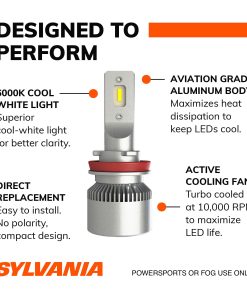 Actualice las luces de su vehículo todoterreno o luces antiniebla con el paquete de 2 bombillas de faros LED SYLVANIA H9. Estas bombillas están diseñadas con LED blancos fríos de 6000K para ofrecer rendimiento, longevidad, estilo y claridad superiores. Además, cuentan con un ventilador de enfriamiento activo que ayuda a mantener la vida útil del LED. Las bombillas de luz LED Sylvania están diseñadas para cumplir con los estándares de rendimiento y vida útil de la SAE, lo que garantiza un producto de calidad. Confíe en Sylvania, líder de confianza en iluminación automotriz, dedicado al rendimiento del producto y al valor.