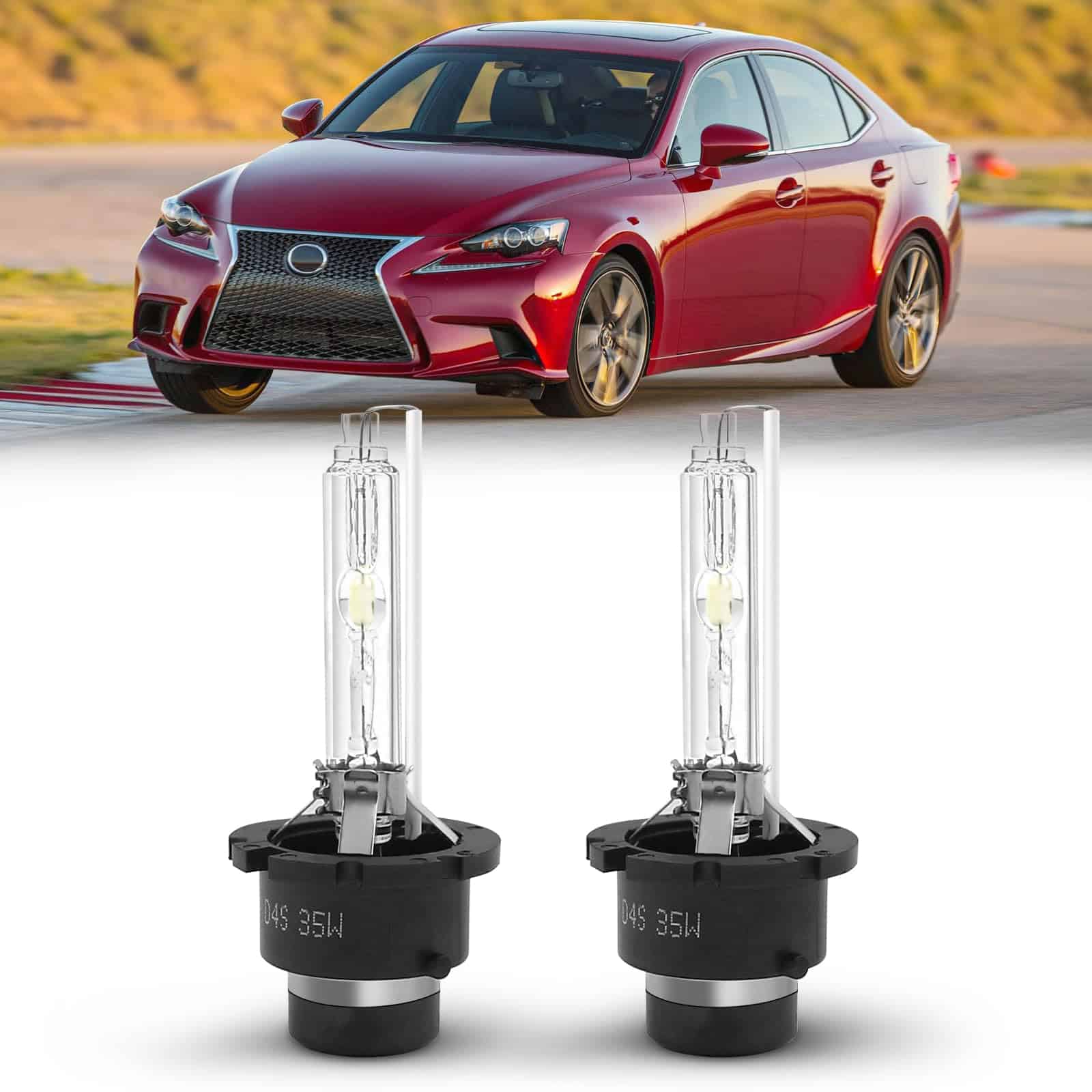 Bombillas de faros Xenon HID D4S 6000K Blanco Frío 35W, Paquete de 2. Las bombillas de faros Xenon HID Tivora D4S 6000K proporcionan una luz blanca diurna confortable y clara, mucho más nítida que el amarillo tenue de fábrica. Son compatibles con Lexus IS250 IS350 2006-2015 y están fabricadas con materiales de alta calidad para garantizar un rendimiento excelente y una vida útil prolongada. La instalación es fácil y no requiere cableado ni modificaciones. Este paquete incluye 2 bombillas HID Xenon D4S 35W 6000K para reemplazo.