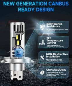 1. 800% Más brillante que las bombillas estándar: Equipadas con chips CSP avanzados, estas bombillas de luz LED H4 para niebla ofrecen una potente salida de 33,000LM/juego, ofreciendo un 800% más de brillo que las bombillas convencionales. La luz blanca fría de 6500K garantiza una visibilidad mejorada, haciendo que la conducción nocturna sea más clara y segura.