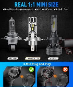 4. Instalación rápida y fácil: Con un diseño plug-and-play, estas bombillas de luz LED H4 9003 encajan perfectamente en la carcasa de fábrica del vehículo. No se requiere cableado adicional o modificaciones, lo que permite la instalación en solo 3 minutos. Simplemente siga las instrucciones incluidas para una configuración sin problemas.
