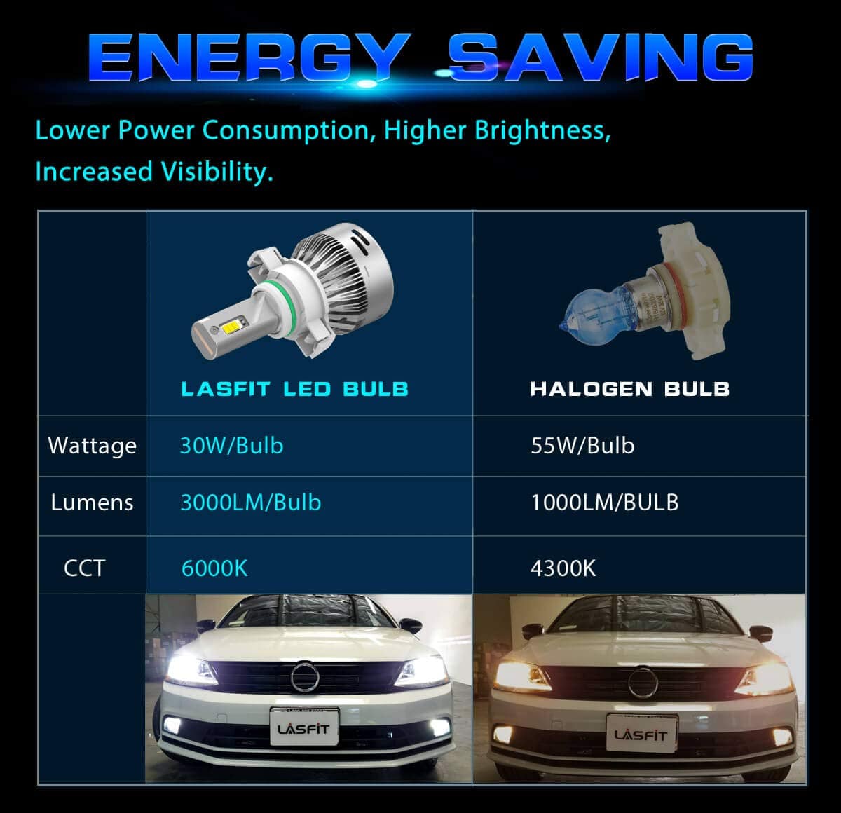 1. SALIDA DE LUZ MEJORADA: Las bombillas de luz LED 5202 de LASFIT cuentan con chips LED de calidad superior y software óptico avanzado que mantendrá la luz mucho más limpia, clara y brillantemente blanca sin importar cuánto tiempo estén encendidas. Los LED empaquetados en cada bombilla emiten una luz de 3000 lúmenes, iluminando naturalmente toda la carretera sin cegar a los vehículos que se acercan, y mejoran una conducción segura por la noche.