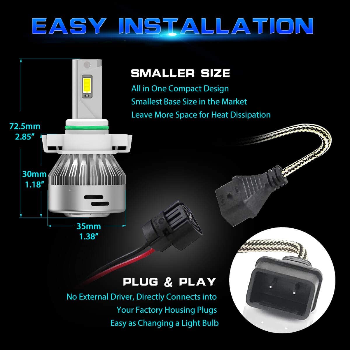 4. DISEÑO TODO EN UNO MÁS DELGADO: Ahorre MÁS espacio con una base de tamaño mini. Tamaño compacto para caber en el interior y no necesita ninguna modificación en más del 90% de los vehículos. ENCHUFAR Y JUGAR, ahorre tiempo para instalar las bombillas.