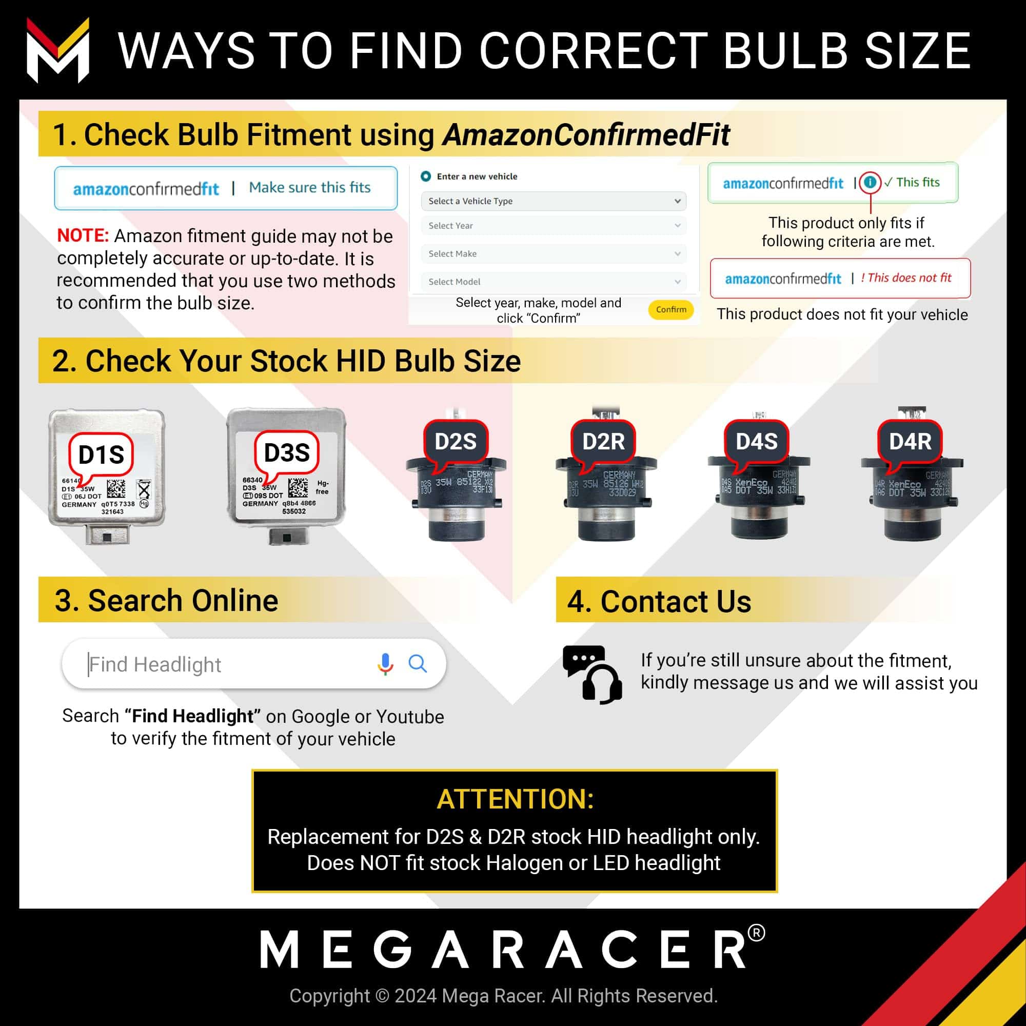 Bombillas HID Mega Racer D2S | Bombilla para Faro D2R |