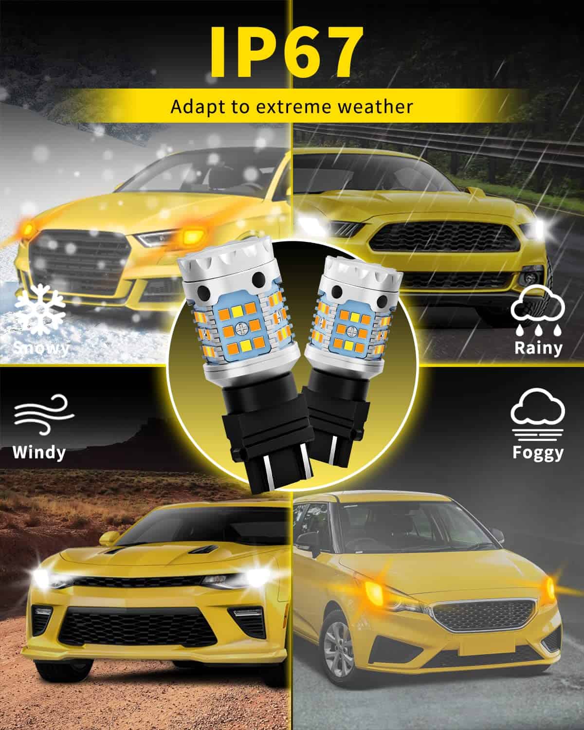 5. Impermeable IP67 Impermeable y a prueba de polvo IP67, que funciona bien en días lluviosos, nevados o con niebla, dándole una mejor visión y mejores condiciones de conducción en mal tiempo. Tamaño Ajustado: 3157 3057 3057LL 3157A 3157K 3157NA 3157LL 3157NAK 3155 3357 3357K 3457 3457K 4057 4057K 4114 4157 4157LL 4157K, etc.