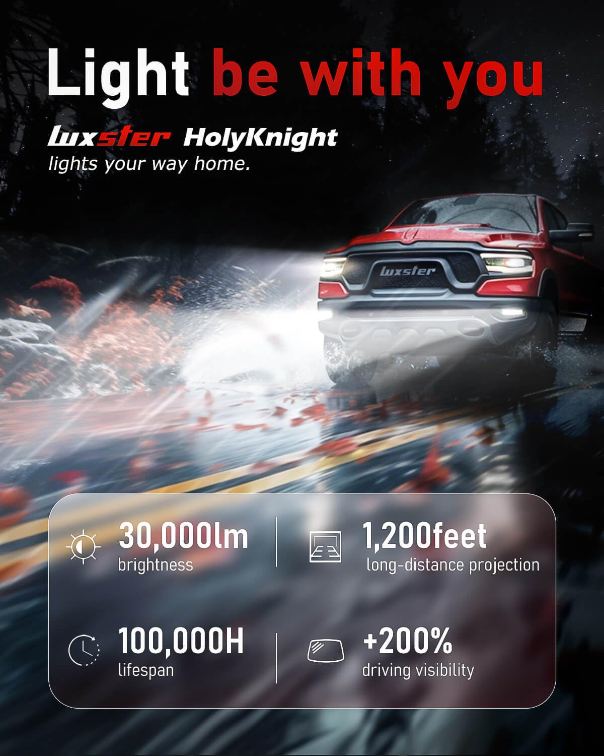 1. 30,000LM Brillo Líder en la Industria Luxster HolyKnight utiliza chips TalonLED, logrando una salida de luz máxima de 30,000lm, estableciendo un estándar de la industria de primer nivel.