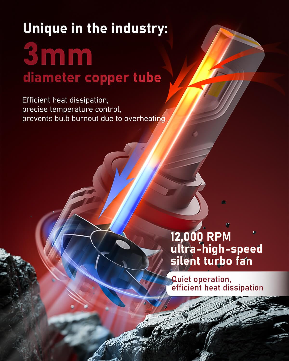 5. Sin Decadencia de Luz en 10 Años Equipado con un tubo de cobre de 3 mm de diámetro único para disipación de calor, HolyKnight mantiene un control de temperatura estable, evitando el sobrecalentamiento y garantizando una vida útil prolongada.