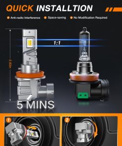 3. Instalación Rápida: Presentando un diseño inalámbrico todo en uno, las bombillas LED H11 de Nilight con controlador incorporado y tamaño más pequeño para ocupar menos espacio en el alojamiento del faro, el enchufe de no polaridad hace que tu instalación sea en 5 minutos, no se necesitan modificaciones adicionales, verdadero plug-and-play.