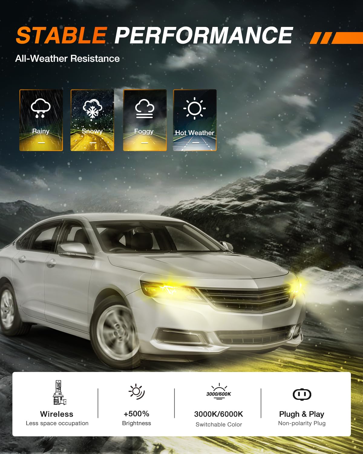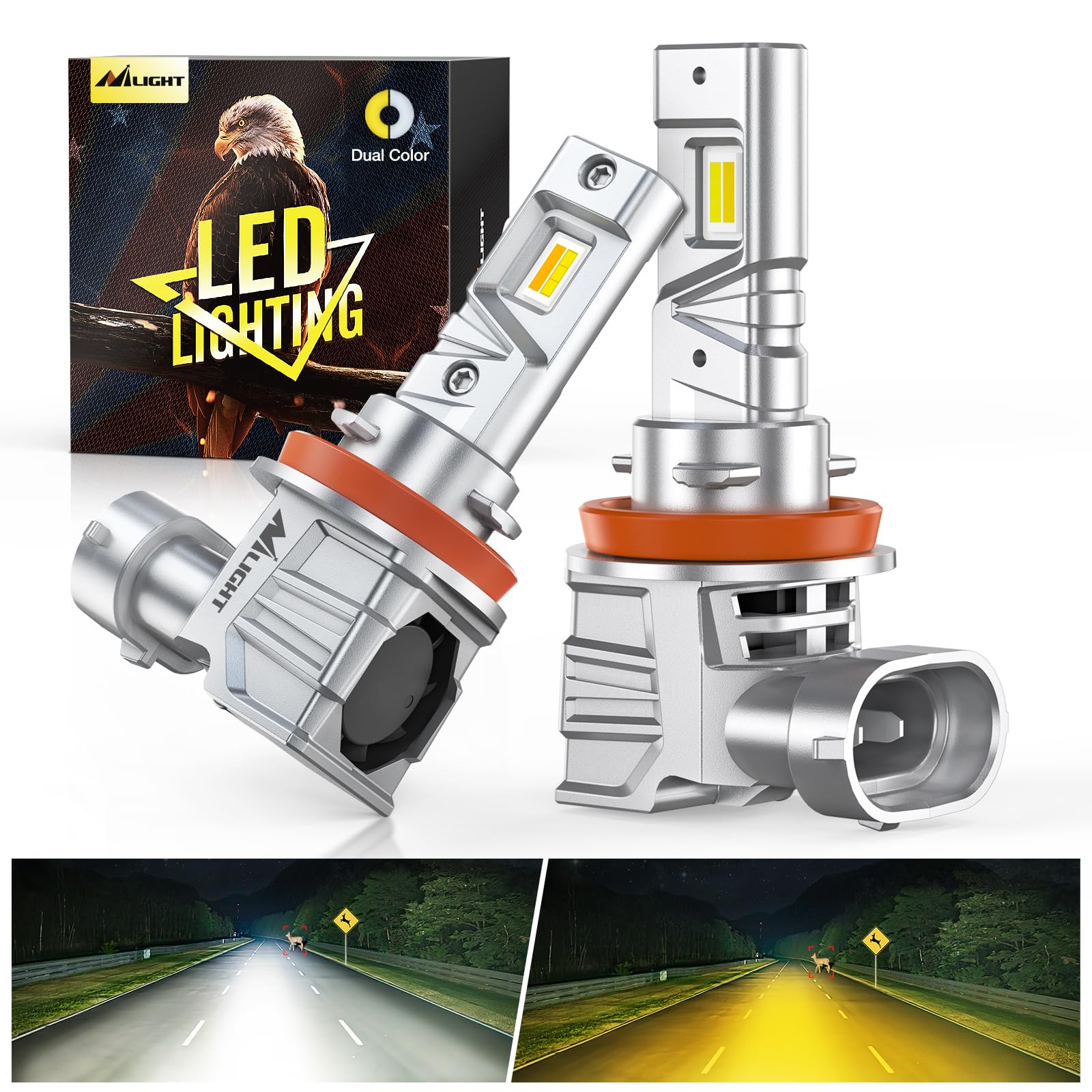 2. 450% más Brillantes: Las bombillas LED H11 de Nilight adoptaron chips LED CSP de grado automotriz 7035, 14000LM por juego, 450% más brillantes que tus faros halógenos originales, cambian sin problemas entre blanco frío de 6000K y amarillo de 3000K según tus necesidades de conducción para una visibilidad óptima.