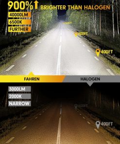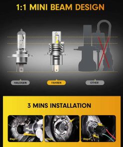 Bombillas para luces antiniebla FAHREN H4 / 9003 que proporcionan 40000LM de brillo, un 900% más brillante que las bombillas estándar. Con una temperatura de color de 6500K blanco frío, estas bombillas garantizan una visibilidad clara y nítida en condiciones de poca luz. Su tamaño mini 1: 1 y diseño Plug and Play hacen que la instalación sea rápida y sencilla. Este paquete incluye 2 bombillas HB2 mejoradas para una iluminación óptima en la carretera.