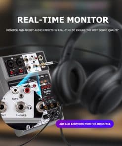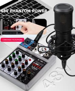 5. Alimentación Phantom de 48V – La mezcladora de sonido tiene 3 entradas XLR con alimentación phantom. Siéntete libre de activar la alimentación phantom de 48V y la mezcladora de audio tiene un ruido ultra bajo que permite ser utilizado con micrófonos de condensador.