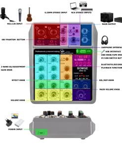 BOMGE Mezclador de Audio Profesional, Consola de Mezcla de