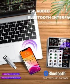 3. Interfaz USB-A para Reproducción/Grabación de Música – Conecta fácilmente tu memoria USB para mezclar y reproducir tu música MP3 en esta mezcladora de sonido. También es posible grabar la salida de audio en una memoria USB.