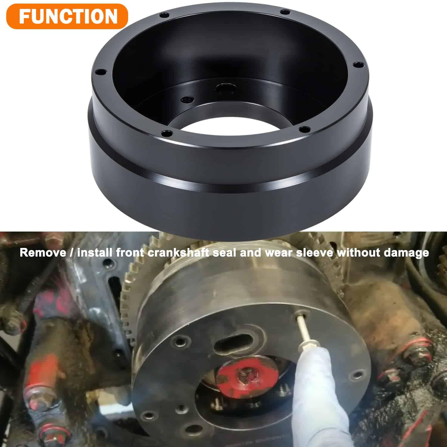 3. Gran función Utilizado para retirar e instalar el sello de cigüeñal delantero y la manga de desgaste sin dañar el sello. Diga adiós a las fugas de sello del cigüeñal delantero y haga que su motor funcione de manera eficiente.