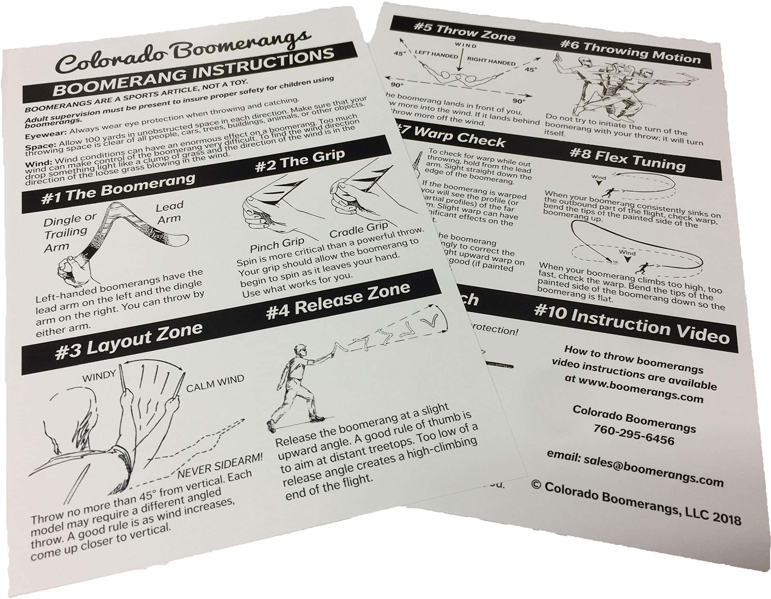 Este es un paquete de 3 Bongo boomerangs para niños. Estos son boomerangs de ESPUMA que son muy ligeros y seguros para que los niños los usen. También son para situaciones de viento ligero o NULO solamente. Son tan ligeros que son inestables en cualquier tipo de viento significativo. Sin embargo, son boomerangs reales que funcionan y son muy seguros para los niños. Lánzalos por encima con el máximo giro para obtener el mejor retorno. NOTA: esto incluye 3 BOOMERANGS y 3 TARJETAS DE INSTRUCCIÓN en el paquete.