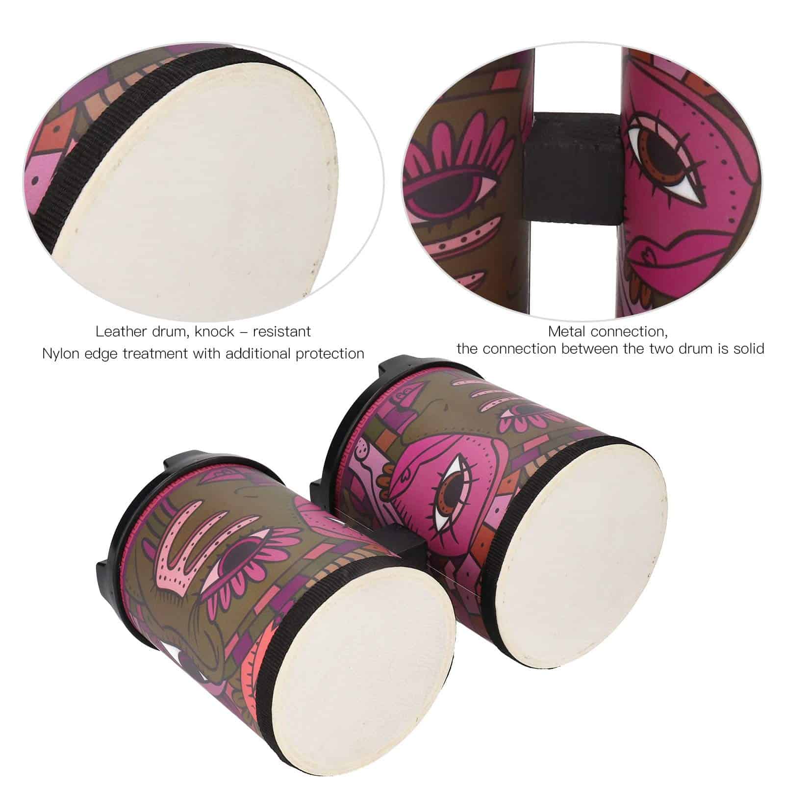 Característica: 1. Doble tambores con sonidos altos y bajos, los tambores dobles están conectados por tornillos de metal, superficie de tambores de piel de cerdo, los tambores son de alta calidad y resistentes a los golpes. 2. El diseño de almohadilla antideslizante en la parte inferior y el diseño de soporte sobresaliente evitan que el sonido del tambor se vea afectado por el cierre. 3. La apariencia del aplique personalizado indio es impermeable, no se cae fácilmente y proporciona una apariencia hermosa. 4. El sonido es un tono de timbre, viene con sonidos altos, medios y bajos, también tiene un tono puro. 5. Puede ser ensamblado por los niños mismos y cultivar su habilidad práctica. Maravilloso juguete educativo. Especificación: Condición: 100% nuevo Tipo de artículo: Bongos Material: Madera + Metal + Plástico + Nailon + Cuero Color: Como se muestra en la imagen Tamaño total del producto: Aprox. 19 x 32cm/7.5 x 12.6in (Como en las imágenes) Lista de paquetes: 1 x Bongos de 16cm 1 x Bongos de 13.5cm 1 x Tornillo 1 x Arandela 1 x Tuerca 2 x Baquetas de esponja