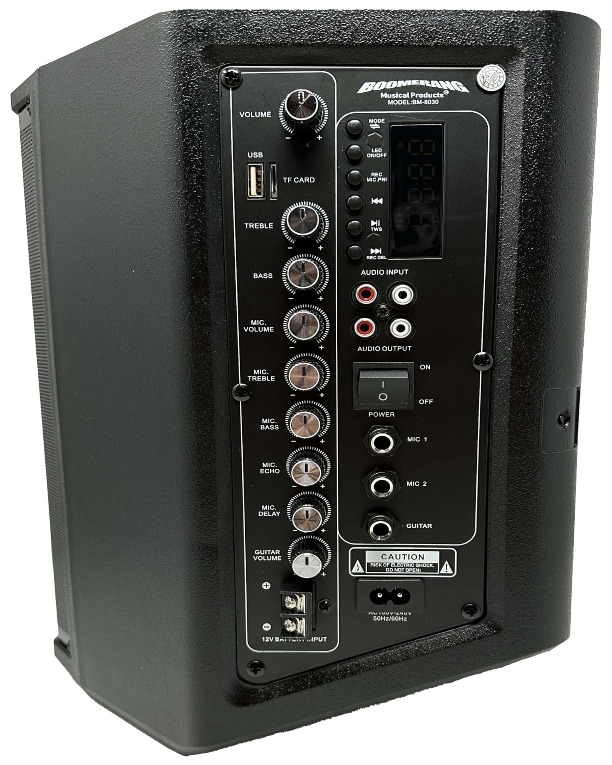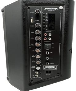 Conexiones de energía: Batería, AC, DC Conexiones de audio: Jacks TS, RCA Tipos de entrada digital: USB, Bluetooth Tamaño de woofer/Tamaño de rango completo: 8 Tamaño del tweeter: 1 Tipo de crossover de audio: BIDIRECCIONAL Capacidad de la batería: 4400mAh Peso: 9 libras Dimensiones: 9.8»x 14.2»x 10.9» ÍTENS INCLUIDOS: Altavoz PA cable de alimentación guía del usuario control remoto