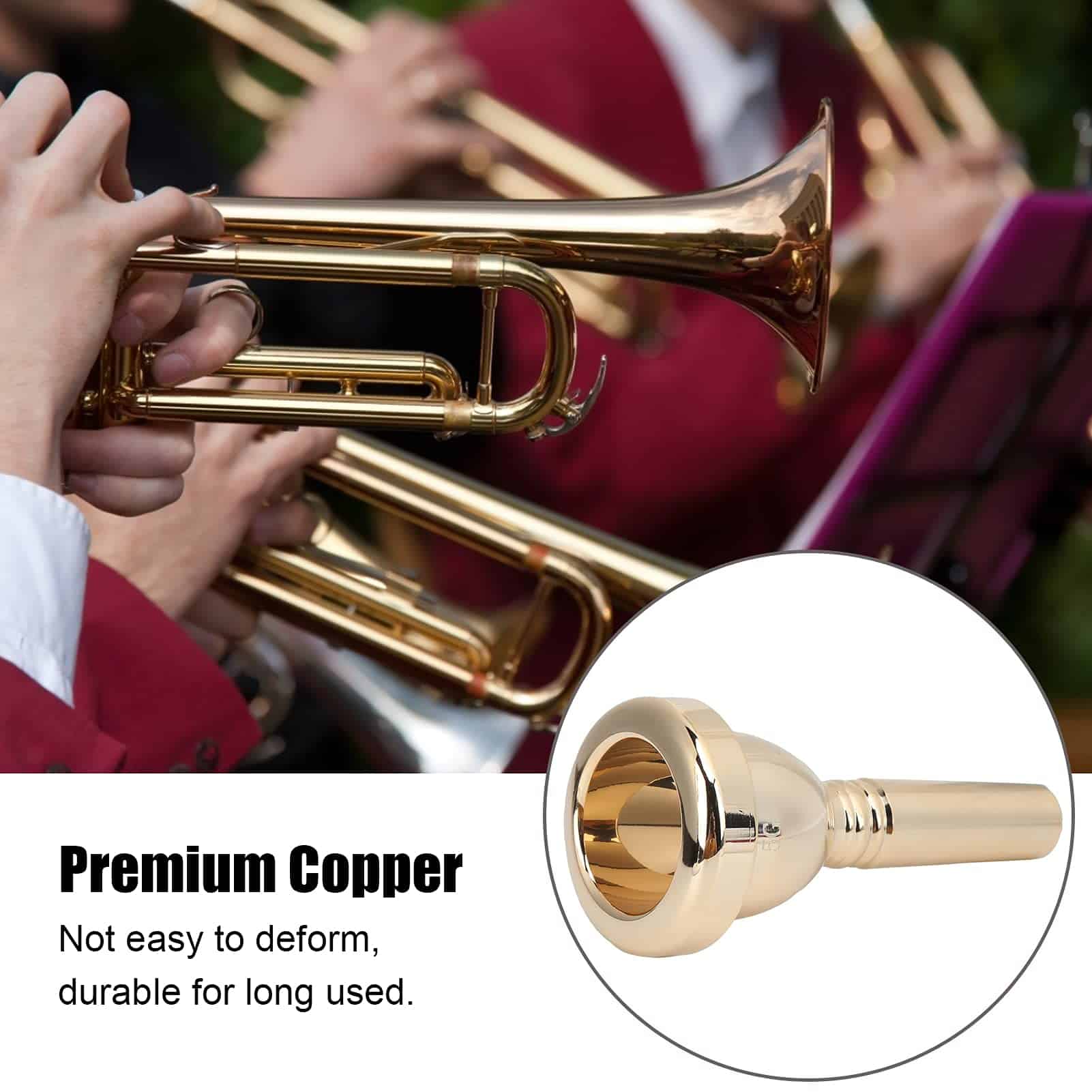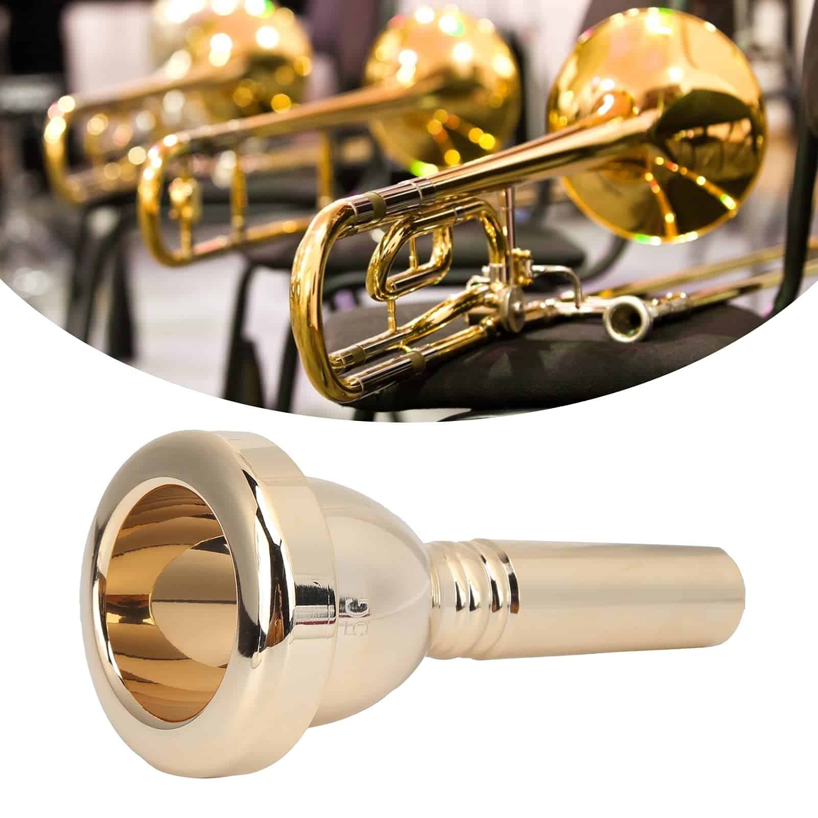 3. COMPATIBILIDAD: Esta boquilla de trombón tenor TR 03 bañada en oro es compatible con la mayoría de los trombones tenores. 12.7mm / 0.5 pulgadas, tamaño de bolsillo, lo suficientemente pequeño como para llevarlo en el bolsillo y disfrutar de la música donde quieras.
