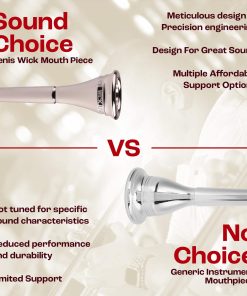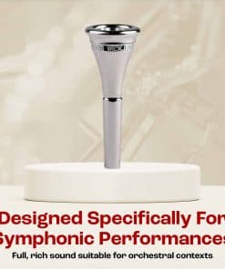 Boquilla para trompa francesa plateada Denis Wick DW5885-5N. Esta boquilla cuenta con una copa en forma de embudo profundo que proporciona un sonido completo y resonante. Su excelente afinación en todos los registros la hace ideal para cualquier músico. Además, la garganta, bocina y copa están especialmente equilibradas para garantizar una respuesta uniforme en todas las notas. El modelo tiene una forma de embudo similar al modelo 5 pero con un aro más estrecho, lo que lo hace perfecto para aquellos que buscan comodidad y precisión al tocar la trompa francesa.