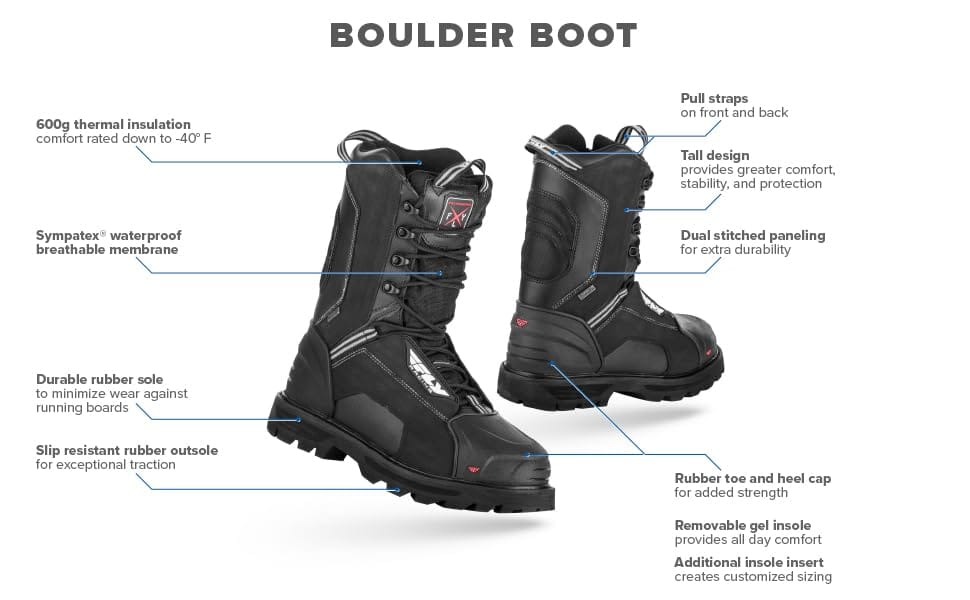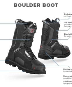 La resistente bota Boulder proporciona un ajuste sólido y funcional en cualquier condición en la que se encuentre mientras monta. Diseñada específicamente para proporcionar al usuario comodidad interior, manteniendo una exterior duradera y práctica. Cada bota fabricada se somete a rigurosas pruebas en la fábrica, para que el piloto pueda centrarse menos en si la bota Boulder resistirá cualquier desafío ambiental y más en disfrutar del mejor deporte del mundo.