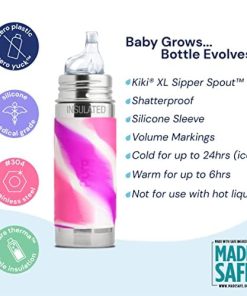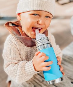 2. VASO SIPPY PARA NIÑOS Y BOTELLA DE AGUA PARA NIÑOS MULTIFUNCIONAL: 100% libre de plástico, la botella térmica de acero inoxidable se transforma fácilmente en una botella para bebés, botella con pajita, botella deportiva o recipiente para bocadillos con componentes de silicona médica de Pura. Bebé crece. La botella evoluciona.