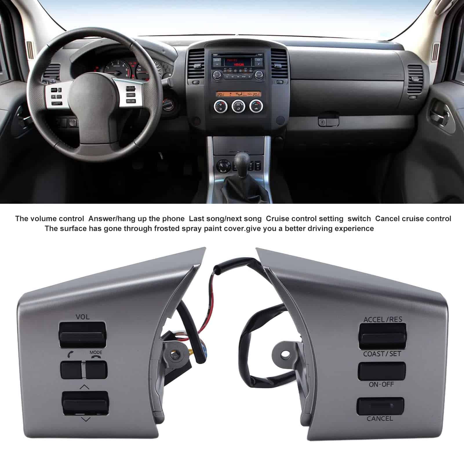 Característica: 1. Ajuste Perfecto: El control del volante es un reemplazo para Navara Frontier Pathfinder 2005-2015, reemplazo para Xterra 2005-2012. Material de Alta Calidad: El botón de control del volante está hecho de ABS de alta calidad, resistente a altas y bajas temperaturas, antienvejecimiento y duradero. 3. Estándar Original: El botón de control del volante está moldeado y diseñado de acuerdo con los datos originales del automóvil, manteniendo el modelo original del automóvil. 4. Buen Diseño: La superficie ha sido tratada con pintura mate, buena adherencia, claramente visible, anti desvanecimiento, brindándole una mejor experiencia de conducción. 5. Instalación Sencilla: La instalación es simple y conveniente, no dañará ninguna parte del automóvil original, simplemente reemplace directamente. Cómo usar: Instalación de reemplazo directo. Especificación: Tipo de Artículo: Botón de Control del Volante Material: ABS Ajuste: Repuesto para Navara D40 2005-2015 Repuesto para Frontier 2005-2012 Repuesto para Xterra 2005-2012 Repuesto para Pathfinder 2005-2012 Lista de Paquetes: 1 x Botón de Control del Volante