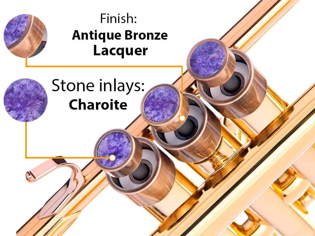 Los Botones de Dedo Personalizados para Trompeta están diseñados para mejorar el sonido, el estilo de su instrumento y sus sensaciones personales durante las actuaciones. El kit contiene: – 3 Botones de Dedo HEAVY con piedras naturales; – Paquete de madera hecho a mano; – Las tapas superiores no están incluidas.