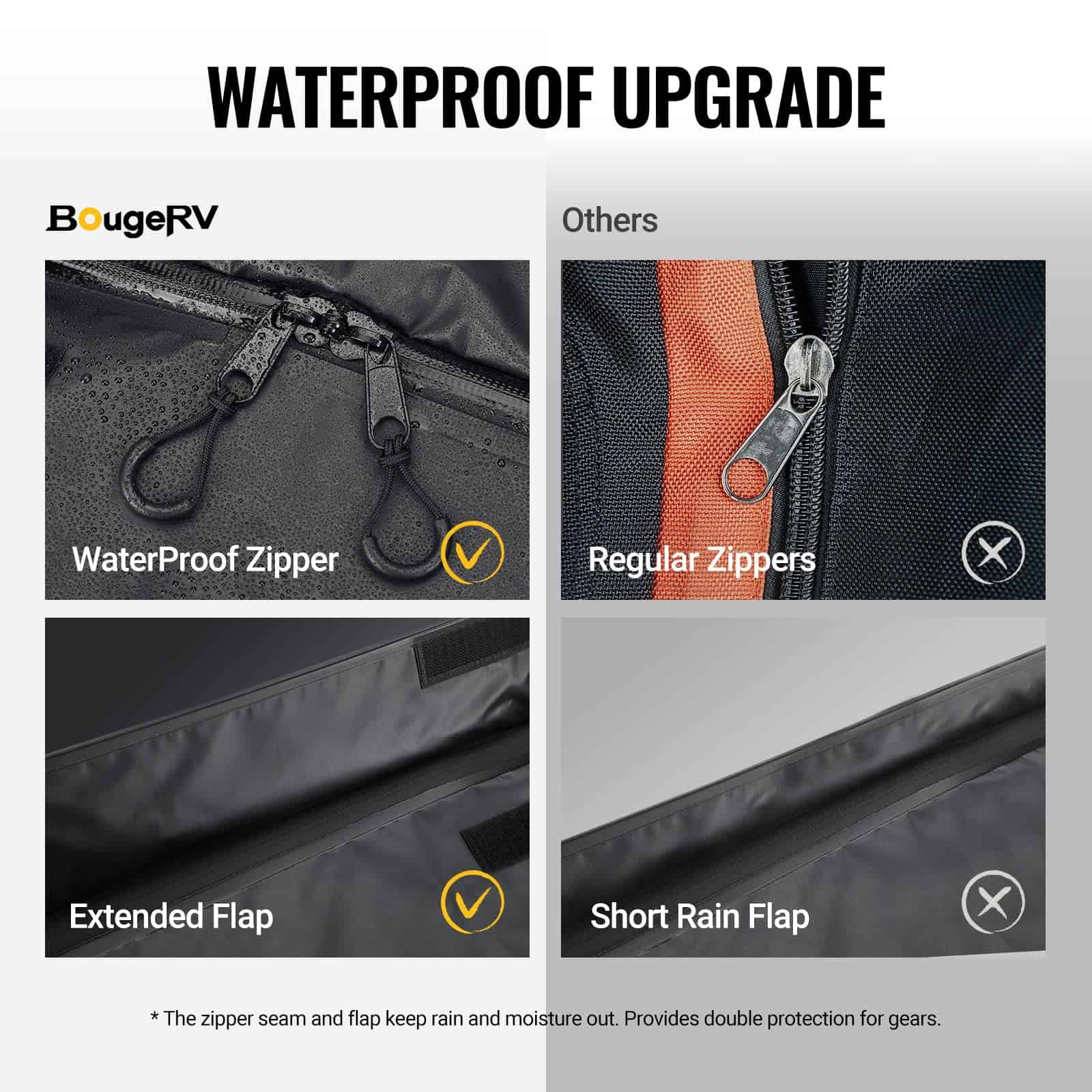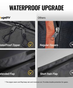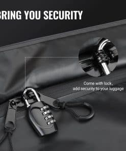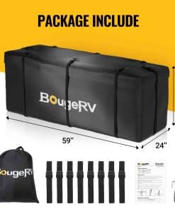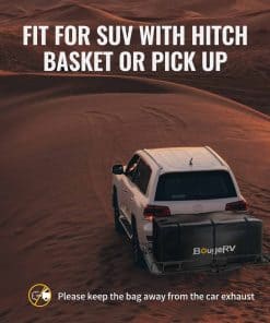La bolsa de carga para portaequipajes BougeRV es la solución perfecta para aquellas ocasiones en las que necesitas espacio adicional de carga. Con una capacidad de 20 pies cúbicos y dimensiones de 59″ x 24″ x 24″, esta bolsa es lo suficientemente grande como para transportar 1 maleta extra grande y 4 medianas, liberando espacio en el interior del vehículo para pasajeros y agregando un amplio espacio de almacenamiento seco. Fabricada con tela Oxford 700D impermeable, esta bolsa garantiza que tus pertenencias permanezcan seguras y secas durante el viaje. Además, cuenta con cremalleras impermeables de 10 zonas, protección adicional contra la lluvia y elementos. La seguridad también es una prioridad, con un candado de combinación y ocho correas reforzadas para asegurar el portaequipajes de manera segura. El diseño expandible permite que la bolsa se pliegue fácilmente y se guarde en la bolsa de almacenamiento incluida después de su uso. Lleva contigo la bolsa de carga BougeRV en cualquier clima para una experiencia de viaje sin preocupaciones. Con soporte técnico disponible durante 1 año, estamos aquí para ayudarte en cualquier momento con cualquier pregunta o problema que puedas tener.
