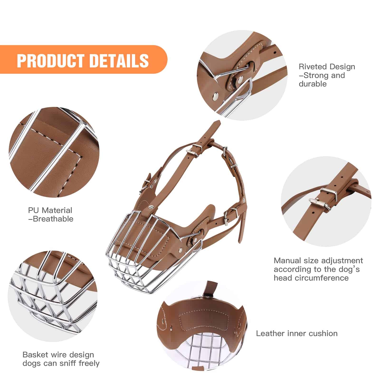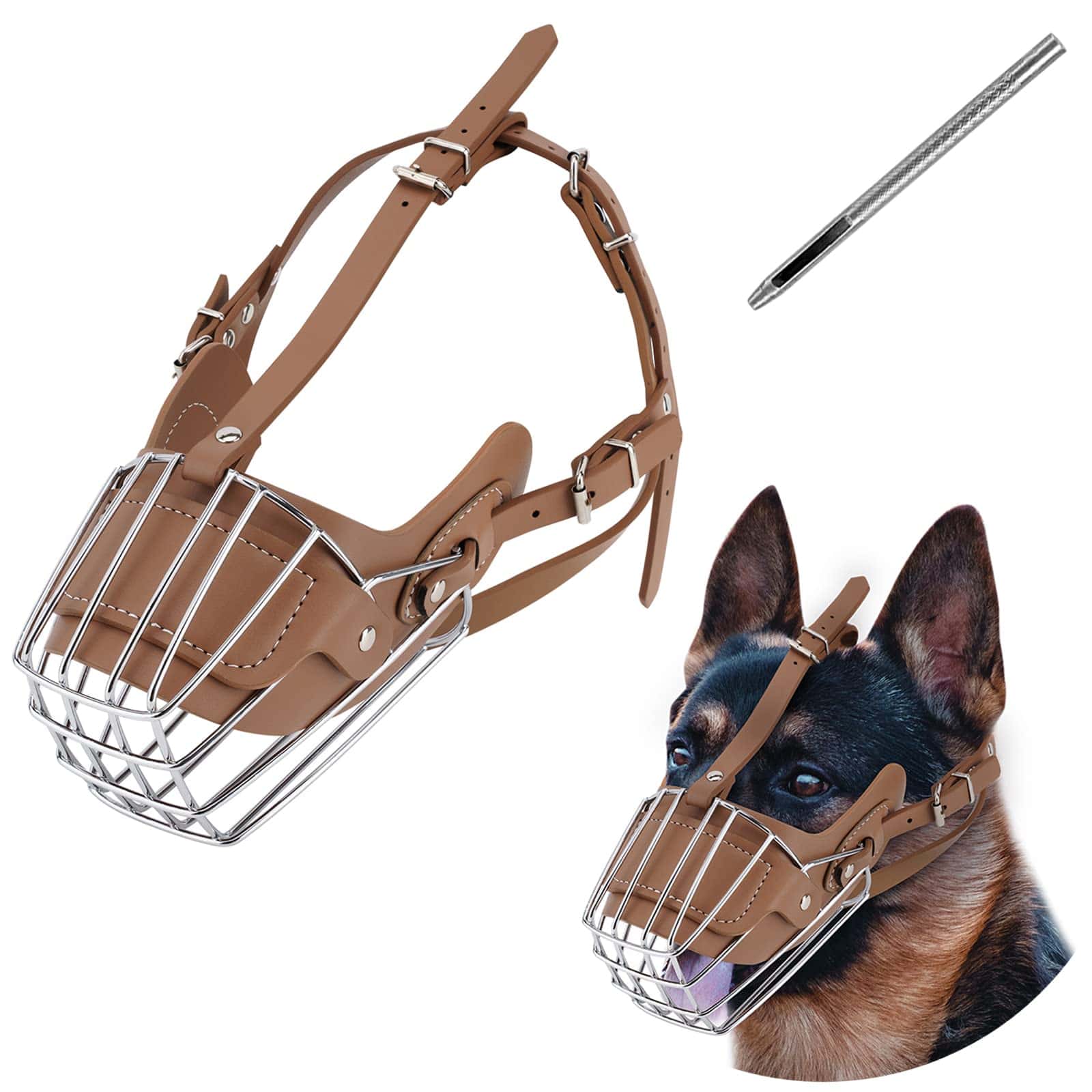 Descripción del producto: Este es un duradero bozal que es adecuado para perros medianos y grandes, hecho de cuero de alta calidad y acero metálico. Protección de seguridad que cubre la boca del perro en todas direcciones para evitar que los perros muerdan/ladren/coman alimentos sucios. Por razones de seguridad, visite a los veterinarios, modifique o manipule a los perros durante el viaje. Recordatorio: ¡Este bozal para perros puede presentar defectos debido al transporte, por favor, comprenda! Tamaño del producto: Longitud delantera de la boca: 32 cm Longitud trasera de la boca: 40 cm Circunferencia cervical: 53-58 cm Peso: Adecuado para perros de hasta 90 kg Color: como se muestra en la imagen Material: acero inoxidable y cuero Productos incluidos: 1x bozal para perro 1x caja de regalo 1x dispositivo de perforación