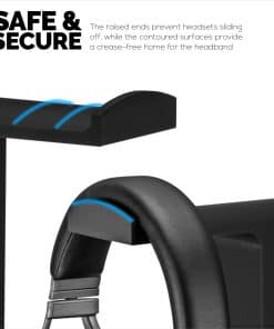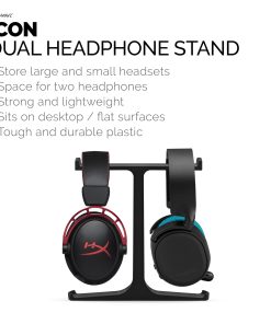 Soporte de auriculares doble para escritorio: El soporte para auriculares ICON mantiene organizada y elegante tu configuración de escritorio. Con espacio para dos auriculares, este elegante soporte es perfecto para jugadores y entusiastas del audio. Muestra y protege tus auriculares mientras los mantienes seguros y accesibles fácilmente. Tamaño universal: Puede ser usado para todo tipo y tamaño de auriculares, nuestro asiento para auriculares ha sido diseñado para cualquier auricular que haya. DOBLE PROBLEMA: Dos plataformas lisas grandes para mantener tus auriculares seguros y protegidos, así como extremos levantados para asegurar que tu equipo no se deslice. DISEÑO LLAMATIVO: Diseño llamativo, con espacio seguro para dos controles, con mucho espacio para los auriculares más grandes. ORGANÍZATE: El accesorio perfecto para ayudar a organizar tus elementos esenciales de juego, combinará perfectamente con tu configuración de escritorio o en el estante de tu sala de juegos, y tener todo a mano cuando lo necesites.