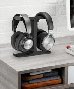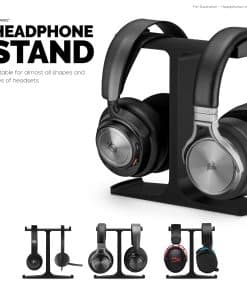 Soporte de auriculares doble para escritorio, perfecto para mantener organizada y elegante tu configuración de escritorio. Con espacio para dos auriculares, este elegante soporte es perfecto para jugadores y entusiastas del audio. Muestra y protege tus auriculares mientras los mantienes seguros y accesibles fácilmente.