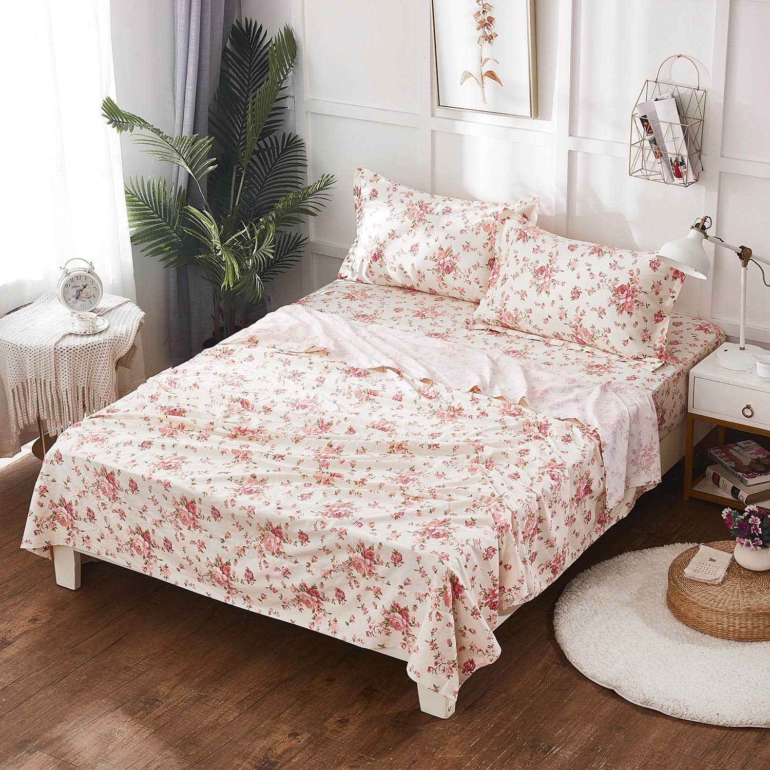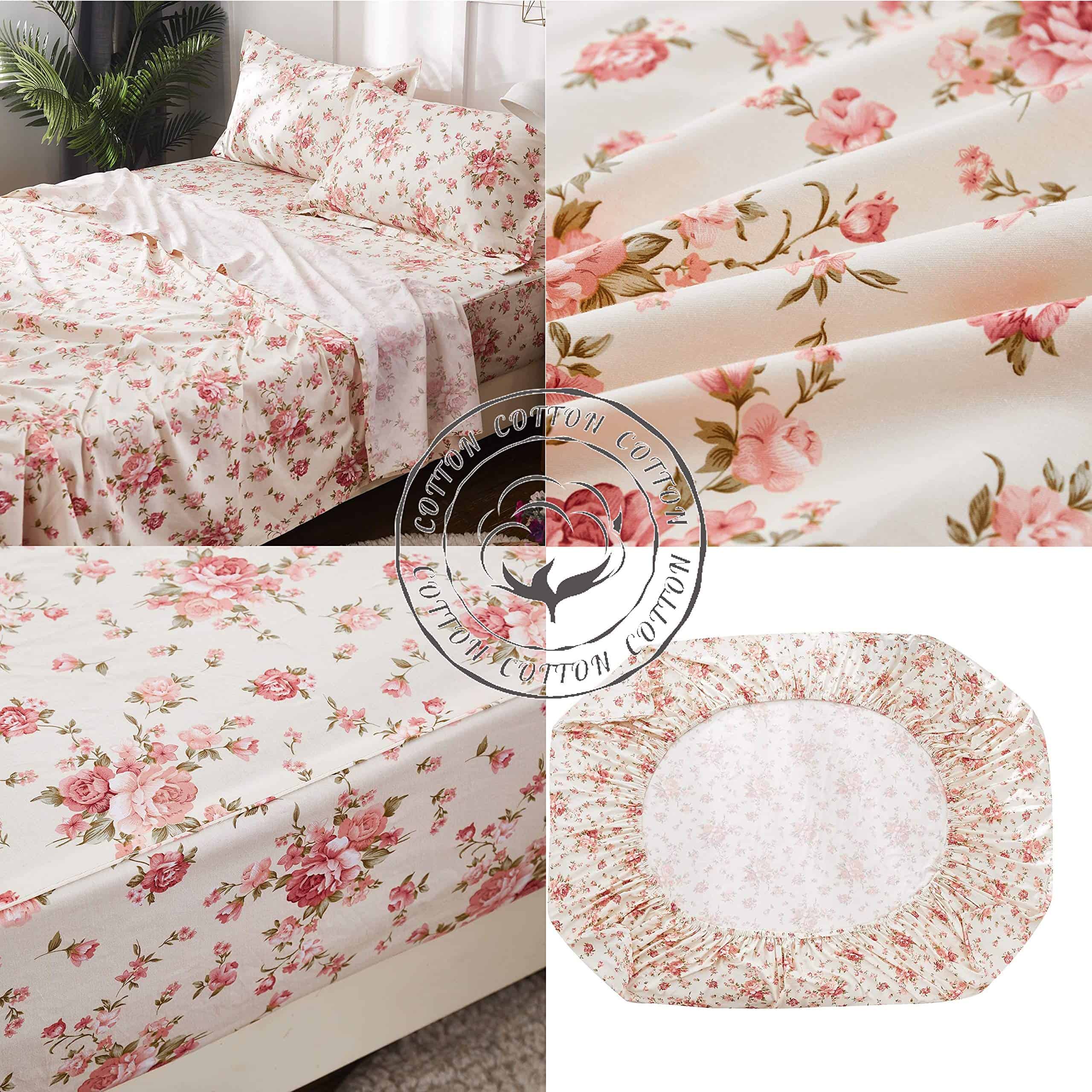 Brandream Juego de Sábanas de Algodón Tamaño Completo Rústicas Florales Shabby Juego de Sábanas de Lujo con Bolsillos Profundos de 18 Pulgadas de 4 Piezas ofrece una increíble suavidad y comodidad con su alta calidad de 100% algodón egipcio. Este juego de sábanas de tamaño completo incluye 1 sábana plana, 1 sábana ajustable y 2 fundas de almohada tamaño estándar. La sábana ajustable de bolsillo profundo se adapta a colchones de hasta 17.5 pulgadas, con elástico en todo el contorno para un ajuste perfecto. El diseño floral estilo shabby chic en un fondo beige claro es sutil y elegante, sin ser abrumador. Las sábanas están teñidas con tintes reactivos respetuosos con el medio ambiente, lo que las hace amigables con la piel. Son duraderas y de larga duración, ofreciendo transpirabilidad y una sensación saludable para un buen descanso. Son fáciles de lavar a máquina en frío y se secan rápidamente en secadora baja. Este juego de sábanas personalizado está diseñado para adaptarse a las necesidades especiales de los clientes; para obtener fundas de edredón y fundas de almohada a juego, no dude en contactarnos.