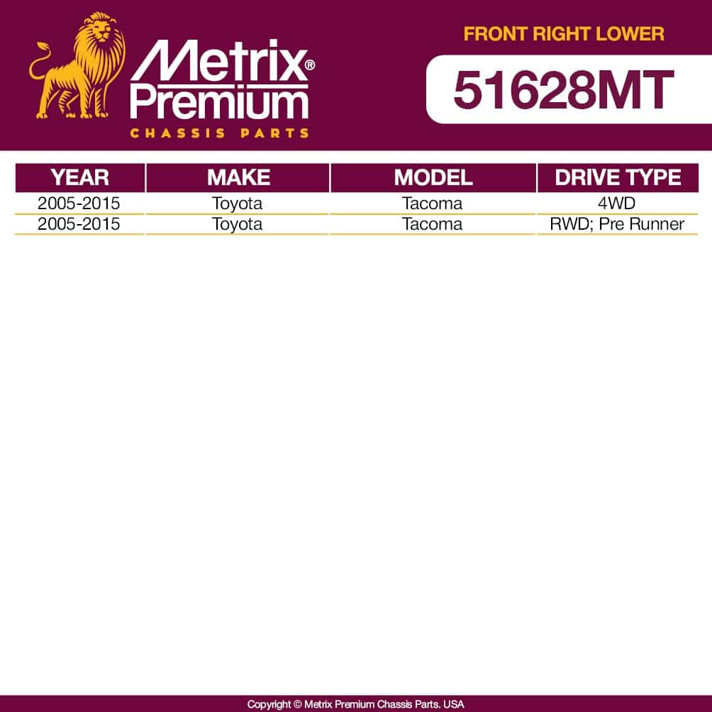 ¿Estás buscando un reemplazo de brazo de control para tu coche ¿Deseas un brazo de control que venga completo con todos los accesorios necesarios para un ajuste a la primera Bueno, no busques más, los Brazos de Control METRIX PREMIUM son el ajuste perfecto, una pieza de calidad premium, fácil de instalar que está diseñada, probada y fabricada para cumplir o superar la calidad OEM!